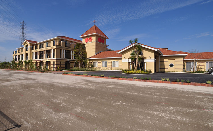 特別養護老人ホーム「大野の郷」 ~緑豊かな周辺地域「くぬぎの森」に溶け込むような福祉施設に~ 概要 建設地茨城県鹿嶋市大字和 敷地面積4,884㎡ 延床面積4,079㎡(バルコニーを含む) 建築面積2,039㎡ 構造枠組壁工法(2X4) 耐火木造(一部鉄骨造) 規模地上2 階 施工会社株式会社村上工務店 工期2009年11 月16 日~2010年6月24 日 施設構成特養5ユニット(50床)、ショートステイ(10床) 、デイサービス(定員30名) 2✕4工法による耐火木造を採用した理由 施主が既存の耐火木造の福祉施設を見学し、2X4 エ法の特性を高く評価したため。 建設コストがRC造より安価におさえられること。 RC 造より工期の短縮化が図れること(パネル化による工期の短縮)。 建設時におけるCO2排出の削減と木材が資源として再利用可能であること(地球環境への配慮)。 施設開設後のランニングコスト(維持管理費)の削減が見込まれること。 スタッフの施設内歩行時の足への負担軽減と利用者の転倒時の怪我を軽減(RC 造に比べて床に衝撃吸収性があるため)。 主な特徴 ◇設計・施工において工夫した点 ◎建設地はもともとくぬぎの木が植わっていた場所で、「くぬぎの森」と称される緑豊かな地域。その自然環境に溶け込むような形状や色調に配慮した。外装は木構造であることが容易に想像できるよう、木造らしい配色を。内装では付け柱や付け梁などを試みた。 ◎居室に面するテラスバルコニー(外部でもない内部でもない中間的な半屋外空間)を設け、利用者が豊かな自然環境を五感で感じながら暮らせるようにしている。 ◎利用者が集う共同生活室にできるだけ自然光が人るよう、勾配天井を採用。 ◎耐火仕様の上にグラスウールを敷き、床仕上げを施し、断熱性、遮音性を高めるなど、心地よい生活空問の創出を心掛けた。 ◇厚生労働省の推進するユニットケアの導入(5ページを参照) ◇耐火木造建築物として厚生労働省の補助金事業及び福祉医療機構の融資を受けた初めての物件。 特別養護老人ホーム「ナーシングホームはるかぜ」 特別養護老人ホーム「かざみ鳥」 関連記事一覧 特別養護老人ホーム「さくら苑」 グループホーム「語り愛」 グループホーム「砧愛の園」 福祉型障がい児入所施設「多摩藤倉学園新男子棟」 地域密着型特別養護老人ホーム「悠久の里」 特別養護老人ホーム「グランツァ」 サービス付高齢者向け住宅「燦燦館東なかつ」 地域密着型特別養護老人ホーム「風の杜」 サービス付高齢者向け住宅「ケアコートはるかぜ」